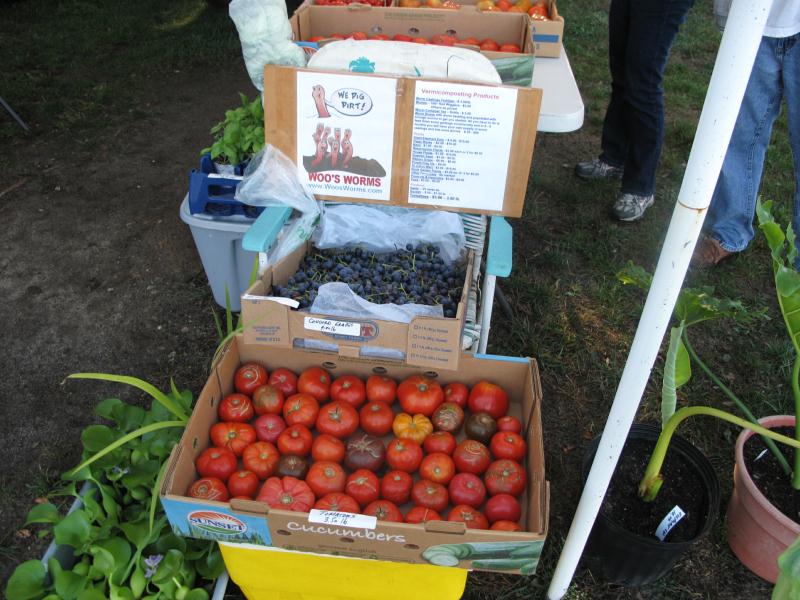 We have a large assortment of vegetables, plants, fresh breads, pies, jellies, soaps, herbs, eggs, chicken, beef, mushrooms.